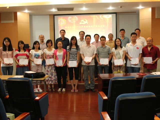 会上,物理系党委书记马学鸣宣读了表彰决定,郭静等5名党员荣获“物理系优秀党务工作者”称号,杨继锋等18名党员荣获“物理系优秀共产党员”称号。物理系党政领导和党委委员共同为获奖同志颁发了奖状并合影留念。