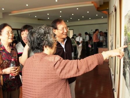 开幕仪式之后,全体退休教职工和嘉宾共同参观了本次书画摄影展,并参观校园大师石、文脉廊,及我校生物演示实验室。