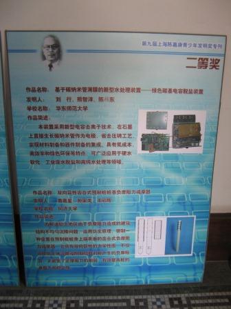 在刚刚结束的第九届陈嘉庚杯青少年发明奖(上海)评选中,我系本科生刘行、熊智淳和陈祎东三位同学的作品《基于碳纳米管薄膜的新型水处理装置》荣 获二等奖,为本届比赛最高奖项(一等奖空缺)。另外,刘行、熊智淳和陈祎东三位同学的作品还受邀参展于新加坡陈嘉庚组委会举办的获奖作品展。