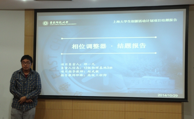 2014年10月29日15:00由物理系团学联学术科创中心在华东师范大学闵行校区物理楼报告厅226和223举行2013年上海市大学生创新项目及大夏基金科研项目部分结题报告会。报告会邀请了姜继森、赵振杰、杨继峰、马雷、袁清红五位老师作为评审专家出席。