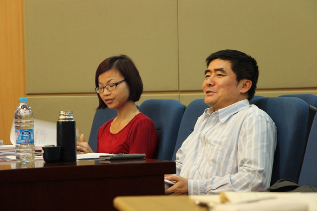 此次答辩会由丁舒悦和孟烨南同学主持。在简短的开场白以及介绍评委老师之后,报告会便正式开始了。此次报告会共有6组来自上创的项目和9组大夏基金的项目。每个项目的答辩时间为10分钟。每组负责人在5分钟的时间内陈述了项目背景、实验过程以及实验成果,及并且对指导老师以给予过帮助的学姐学长表达了谢意。在余下的5分钟,各位评委老师提出自己对该项目的疑问,并对一些不足之处提出建议,之后给各项目打上了评分。本次答辩会于2014年10月29日16:30正式结束。