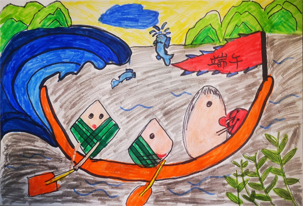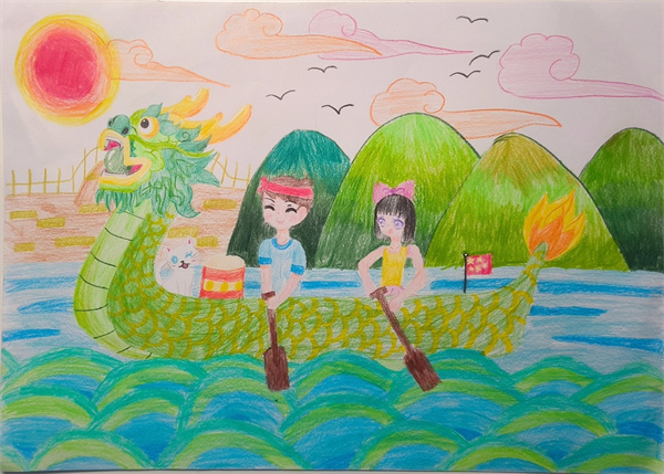 作者感言:端午节,是我国传统的重要节日,人们有划龙舟的习俗,这是端午节最重要的活动之一。小朋友手持长桨,划动龙舟,以最快的速度划向终点。作为文化传承的划龙舟比赛,我们感受到团结协作、拼搏向前的优秀文化传统。