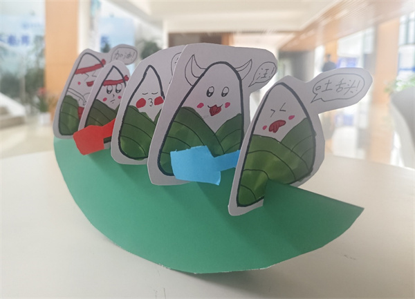 作者感言:绘画剪纸作品,拟人化的粽子卖力地划着龙舟,表情各异。