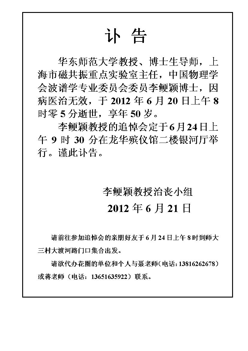 李鲠颖教授治丧讣告