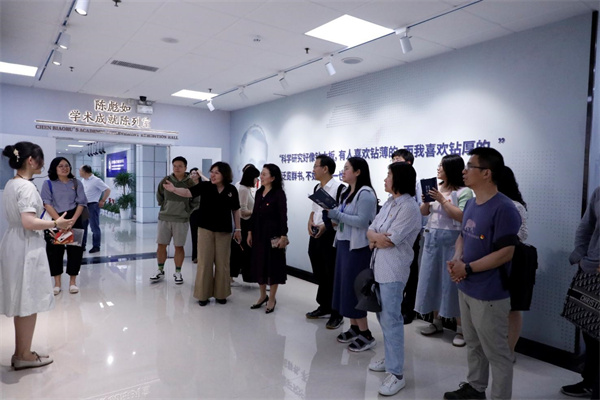 行政党支部书记袁会敏谈到,“实践教学活动让支部党员深刻感受到了百年大夏的光荣历史和陈彪如大师的学术成就。作为新时代的师大人,我们要传承和发扬前辈‘自强不息’的办学精神,赓续师大文脉,自觉锤炼党性,心怀大我、追求卓越,为学院高质量发展,为学校双一流建设贡献力量。”