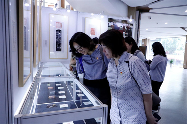 物理系教工党支部书记杨洋谈到,“‘大夏百咏’篆刻展和‘大夏流芬:大夏大学建校百年文物文献展’不仅仅是对校史的回顾,更是对学校精神的一种回响和共鸣。通过这些篆刻作品和文献展品,我们可以更深入地理解自己的学校,增强归属感和自豪感,同时也激励我们在学术和个人成长上持续努力,追求卓越。”