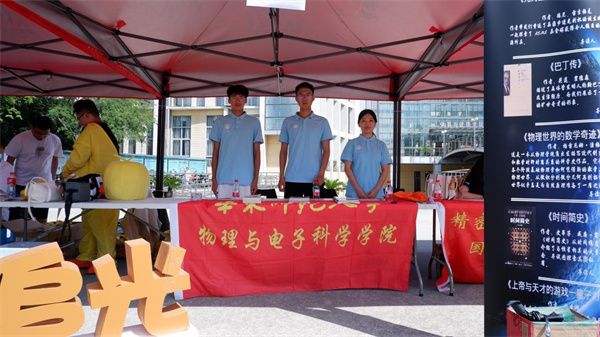 早晨7:30,42名迎新志愿及部分新生学导准时守候在物理楼、大学生活动中心、校门口等点位,协助新生办理报到手续。学院为2023级新生准备了“悟理蓝”院服和“追光”手账本,培养新生归属感和荣誉感,帮助他们尽快融入学院大家庭。
