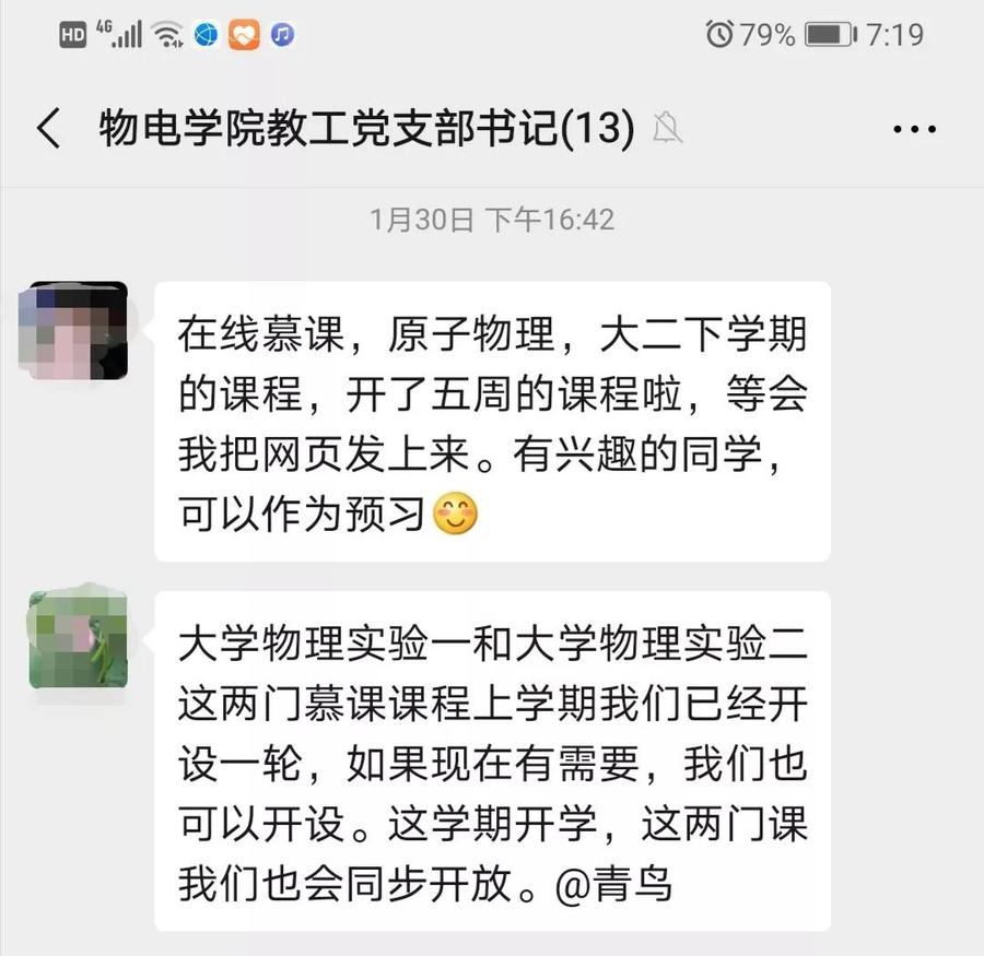 此前,胜游体育党委号召全院教师,特别是党员教师积极挖掘在线教学资源,为学生开展线上学习提供多种支持。1月30日,就有不少党员教师通过MOCC平台,为本科生提供了《原子物理》《大学物理实验》等云课堂,物理系教工党支部书记、系主任陈丽清谈到,“这段特殊时期内虽然没有办法进行面对面授课,但是线上课程目前已经非常完善,把上课的视频、课件和作业通过线上平台发布给同学,并开展在线答疑,是非常好的替代方式”。