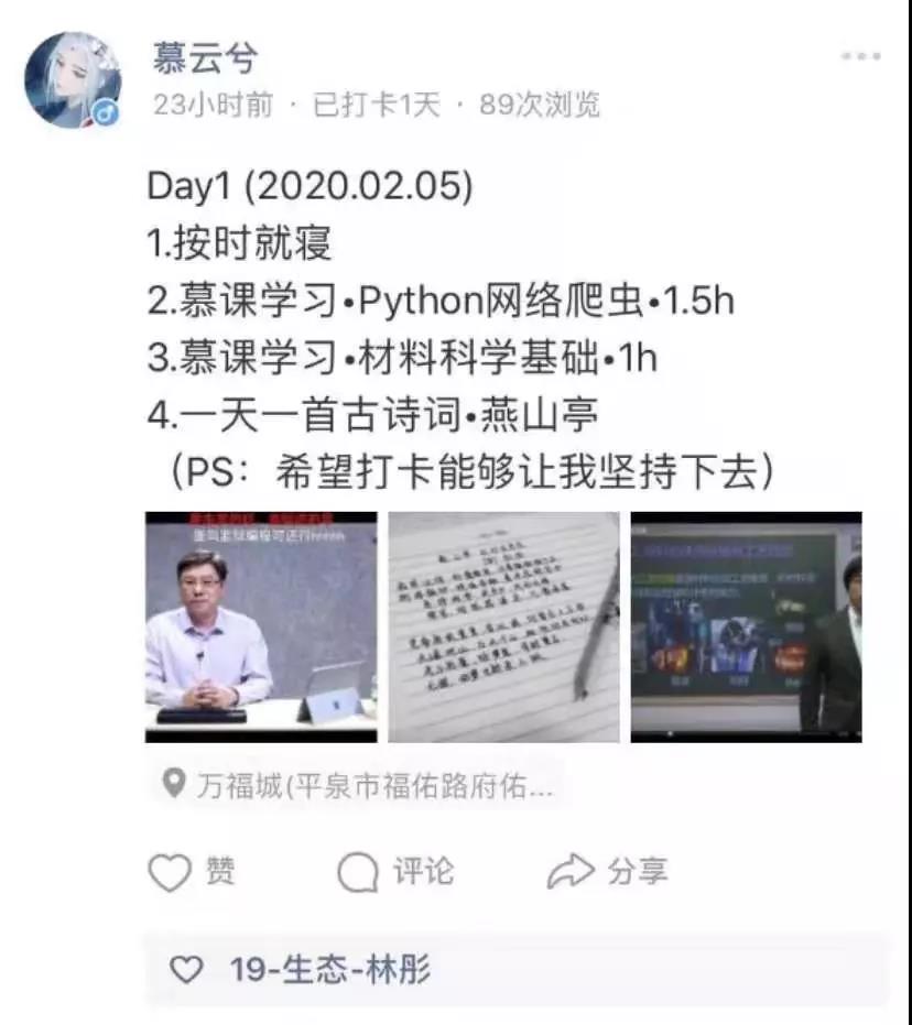 在每日“云自习”打卡结束后,黄蕊还会给同学们准备一些“小惊喜”,同时围绕学生在学习方面的困惑,联系专业教师、班主任一起开展学业指导。“希望云自习的方式,带动更多的同学利用好这段时间,‘停课不停学’,通过自控和自律保持专注的学习状态,就是对抗击疫情最大的支持!”她谈到。