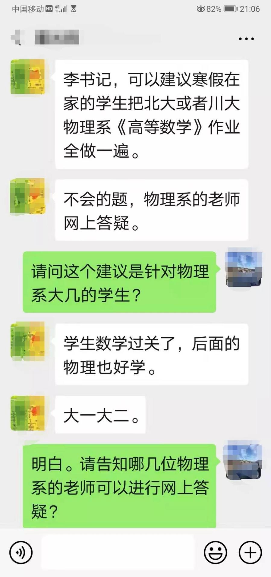在得知假期延长后,物电学院的老师们还为同学们提供了《Fundamentals of Physics》《高等数学》等电子学习资源,鼓励同学们把专业学习和英文学习结合起来,夯牢专业基础、提高专业英语阅读能力,同时通过邮件、微信、QQ等途径为同学们提供答疑通道,及时提供在线支持。