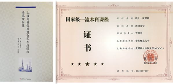 管曙光教授主持多项省部级课程建设项目,积极探索在线课程教学和混合式教学模式,在国内高校中处于领先水平,主导并探索的以学生自主构建知识架构为中心、全面提升创新能力的光学课程新体系,教学效果显著,主讲的《光学》翻转课堂入选上海市高校优质混合式在线课程示范案例,《波动光学》作为国内第一门面向物理专业学生的光学慕课,在难度和深度上具有标杆意义,迄今已运行11期,学习者超过3万人,实现了优质资源共享,取得了良好的社会效益。该慕课入选首批国家级线上一流本科课程并成为首批上线的国际版慕课。