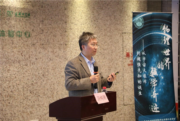 在导读环节,段纯刚介绍了《物理世界的数学奇迹》的主要内容,回顾了数学工具开拓基础物理学理论的历史进程。段纯刚谈到,欧洲粒子对撞机发现“上帝粒子”希格斯玻色子,引出现代高能物理实验学者所面临的共同困境,即“实验对象的尺度、能量及探测时间已经远远超出了人类目前拥有的能力”,高等数学能够为基础物理学的探索插上思维的翅膀,如物理学领域的振幅多面体研究需要借助数学领域的格拉斯曼流体理论,而三叶扭结、卡鲁扎-克莱因模型、第五维度、类脑与超脑等前沿研究都与数学密切相关,这再次说明了学科融通、思维跨越的重要意义。