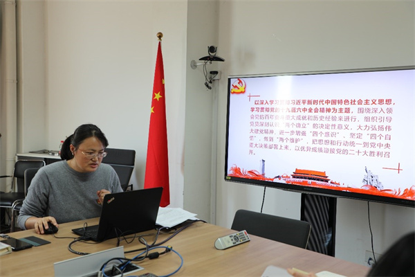 首先,袁会敏做2021年支部工作汇报。她围绕支部2021年度工作开展情况、存在问题及原因分析、未来工作思路举措三个方面进行汇报。她表示,2021年行政党支部在学院党委的领导下,切实加强思想政治建设,积极探索管理育人、服务育人新途径,加强规范化、精细化管理,努力为一流学科建设、卓越人才培养做好服务支撑。与此同时,支部在理论学习、支部战斗力等方面仍存在提升空间,今后支部将进一步加强思想政治引领,丰富学习内容和形式,提升支部凝聚力,打造高素质、高效率、高水准的行政管理团队。