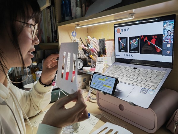主讲学生志愿者辛玥以《穿墙而过的小球》为题,通过趣味小实验,引导同学们发现藏在“墙”里的秘密——偏振片。利用直观的模型,为同学们讲解了偏振片的特点、偏振光的产生原理、拓展了同学们对光的波动性的认识。解密了“墙”的相关知识后,辛玥线上指导同学们自主完成了小球实验,让同学们在自己动手的过程中对偏振光有了初步的了解。