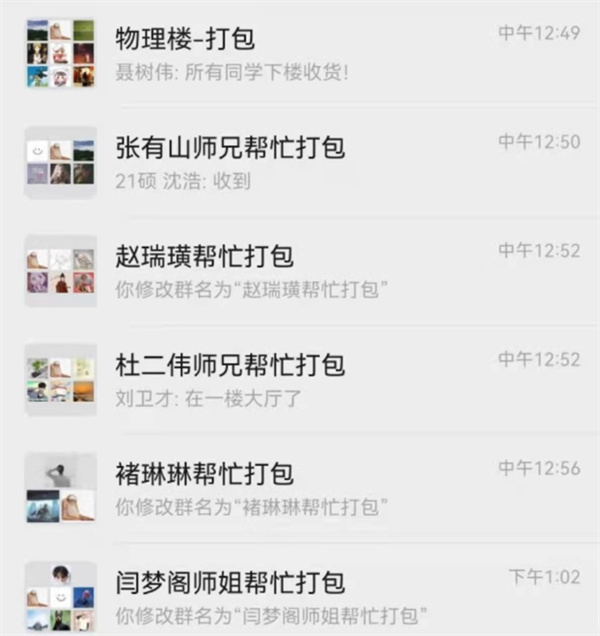 留守在物理楼、信息楼、光学大楼内的师生纷纷报名志愿者,做好防护并临时充当“打包员”“快递员”,接力运送到学生手中。