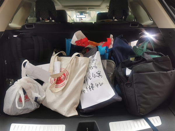 据统计,在两天时间内,学院留校师生志愿者从物理楼、信息楼、光学大楼、生科附楼、实验A楼5栋楼宇打包整理近90名同学的百余件电脑等急需学习生活物品,运往本科生公寓、虹梅南路公寓的9个公寓楼。