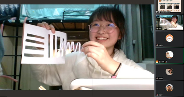 在谈及如何克服场地和实验器材困难时,预备党员、学生志愿者辛玥表示:“没有教室,就在宿舍直播;没有教具,就用现有的材料代替;没有材料示范,就播放提前录好的视频。尽管条件简陋了些,教具粗糙了些,但我们更想给孩子们带来有趣的知识,让他们能够在实验中探索物理与科学的魅力。”