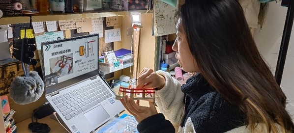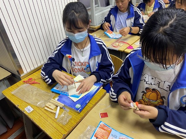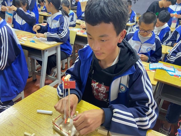 在实验环节,刘文慧向大家细致讲解了实验材料、组装要求及实验装置的各种细节。随后,金所中学的同学们自己动手完成了实验装置。科普小实验很好地将理论知识与动手实践结合起来,引导同学们积极探索、主动创新,激发科学兴趣。