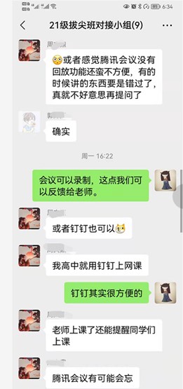 钱静、阮建红分享了利用大夏学堂进行过程性评价和小测验的课堂经验。阮建红表示,根据考试成绩对比分析,能够比较合理地了解学生的真实学习情况。“每次测验学生都开着摄像头,学生也遵守了诚信考试的要求。我还把直播的内容本地录制下来,上传到大夏平台,效果还是不错的。一般1.5小时的课保存之后100M多一些,很方便。”钱静说。陈丽清表示,会为学习困难的学生开展个性化的课后辅导。龚士静说:“我们平行班的网课,课前会沟通课程进度,讨论如何调动学生的积极性。很多学生很乐意在腾讯会议中的信息栏回复问题,这个功能也挺好用。”管曙光表示,结合目前学校在做的慕课和在线课程等,网课可以合理利用优质的线上课程资源,结合主动的课程设计和互动、加上个性化的辅导,能达到比较好的授课效果。