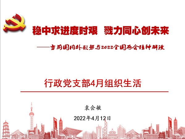 4月12日下午,学院行政党支部开展主题党日活动,以在线学习的方式,集中学习习近平总书记关于疫情防控工作重要讲话精神、2022年全国两会精神。会议由支部书记袁会敏主持。