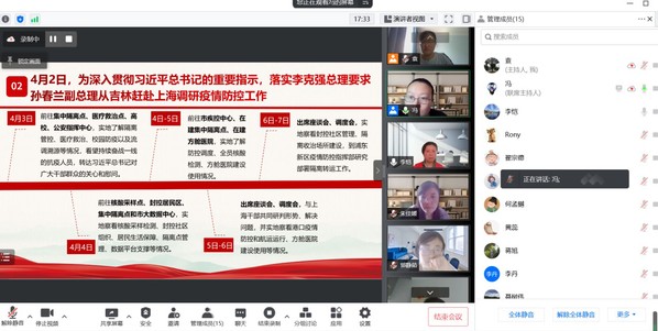 最后,袁会敏介绍了支部党员社区双报到、参与疫情防控工作情况。她表示,支部除通过“学院师生在线问答平台”为学院师生提供精准化咨询服务外,每一位党员同志都在积极行动,全力投身到这场严肃的抗疫战斗中。据统计,支部目前共有8位党员积极参与到学校或居住地社区志愿服务中,全体党员均已通过“先锋上海”完成社区报到。