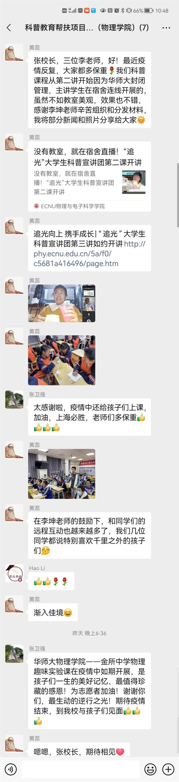 4月6日、13日晚,“追光”科普宣讲团为云南寻甸金所中学举办的第四讲、第五讲科普课如期进行。“追光”科普宣讲团指导教师黄蕊、学院党建服务中心干事在线参与,“追光”科普宣讲团学生志愿者、2019级师范生苏凌飞担任主讲人。