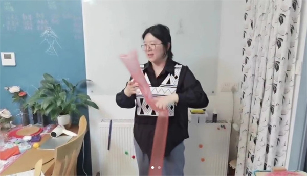 由于疫情导致物流滞缓,主讲同学无法及时获取实验材料,为了不影响教学效果,科普宣讲团指导教师黄蕊居家连线辅助,为金所中学的同学们演示操作了“吹袋子”和“悬浮乒乓球”的小实验,并讲解了实验背后蕴含的物理原理,深入剖析了伯努利原理的知识和应用。
