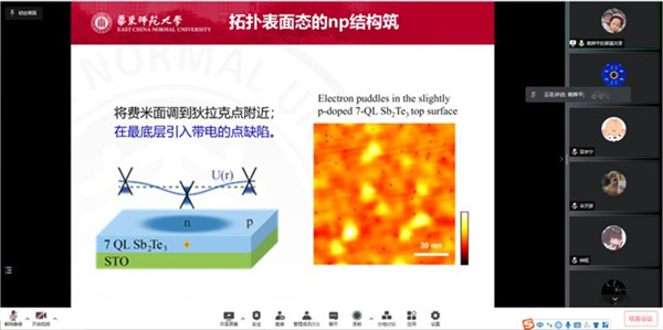4月18日,青年研究员蒋烨平作题为《三维拓扑绝缘体表面态的Berry相开关效应》的学术报告,着重介绍了三维拓扑绝缘体上表面态圆形np结的构筑,准束缚态贝里相跳变现象的观察,并结合数值模拟和半经典图像模拟阐述了贝里相开关的机制,为未来新器件替代传统半导体器件的探索提供了新的思路。