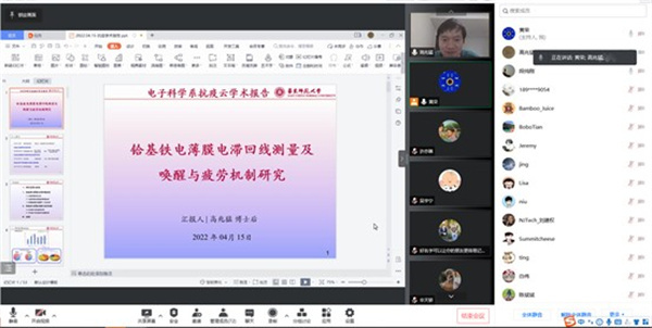 黄荣表示,疫情期间,电子科学系将继续不间断地开展“抗疫云学术报告”系列讲座,坚持以学术为纽带,为师生共筑抗疫防线提供有效支撑。