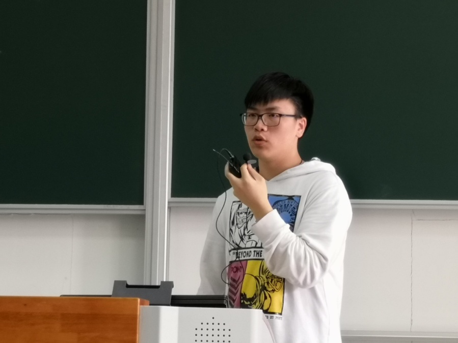 优秀学生代表潘晟哲同学是2015级基地班的学生,曾获得2017-2018学年国家奖学金,发表一篇美国光学学会新刊OSA Continuum。潘晟哲同学结合自身科研经历,与同学们分享了课题选择的经验、实用的计算编写软件以及遇到挫折时的心路历程。他鼓励在座的同学无论成功与否,过程中都能收获宝贵的经验,从自主实验开始,寻找志同道合的同学,尽早开启科研训练。