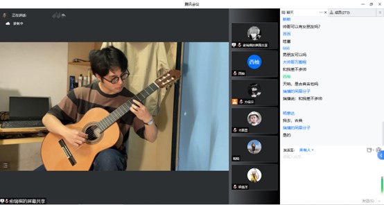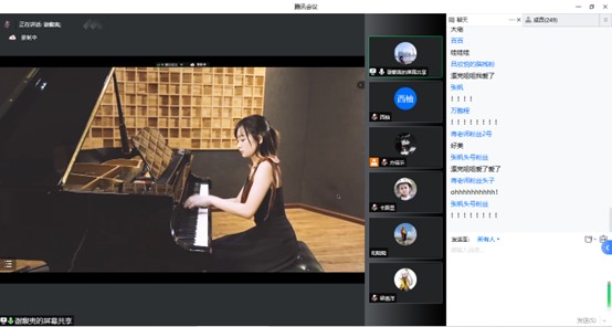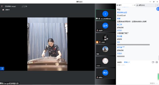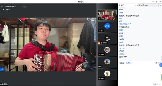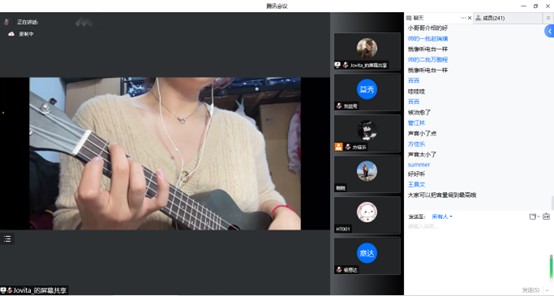 学院党委副书记蒋旭在开场中表达了对学院工会和师生的感谢,同时表示,希望师生在云端感受音乐魅力的同时,积极抗疫、保重身体。音乐节分为文艺表演和游戏互动两部分,节目包括歌曲、京剧演唱以及钢琴、吉他、尤克里里、古筝、手风琴等乐器表演。2020级原子与分子物理专业的赵瑞璜同学,音乐学院的演出嘉宾刘春洋同学、谢馥夷同学分别带来了精心准备的演唱曲目,把晚会的气氛推向第一波高潮。