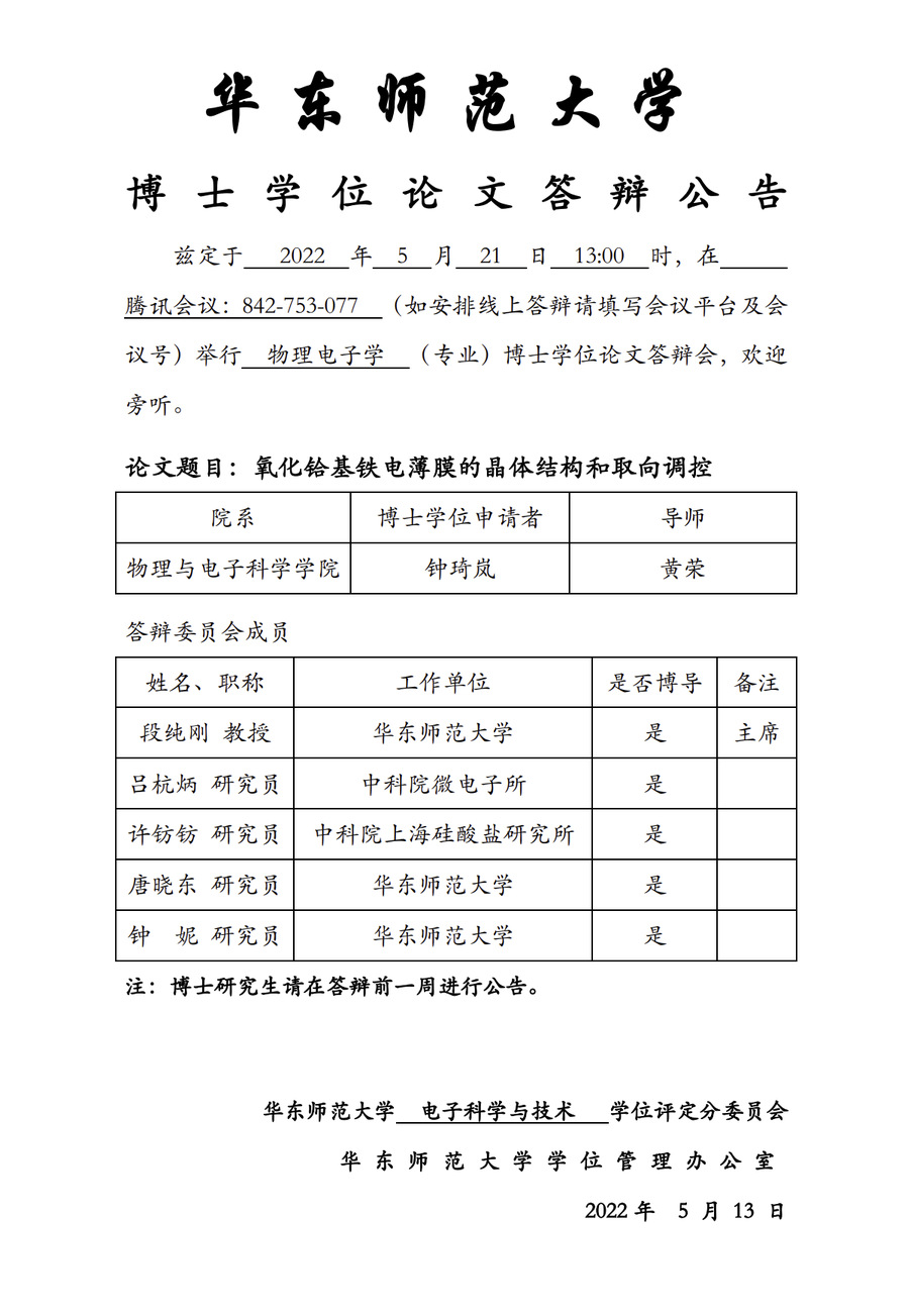 华东师范大学 博士学位论文答辩公告-钟琦岚