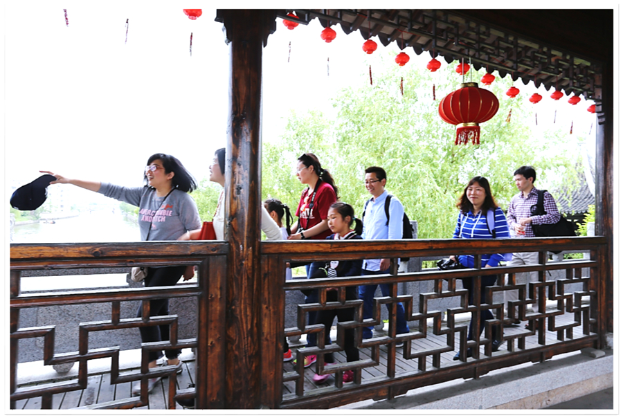 这是一场有组织有计划的出行,感谢物理与材料学院工会静心安排,前期经过工会主席马红梅老师和几位工会积极分子多次碰头,发通知,定行程,最终确定了约80人左右的日程安排。4月21日清早8点30分,两辆旅游大巴车分别从中北和闵行两个校区出发,路上黄蕊老师还为大家客串了地导,介绍锦溪当地的风土民情,经过近两个小时行程才到达目的地。