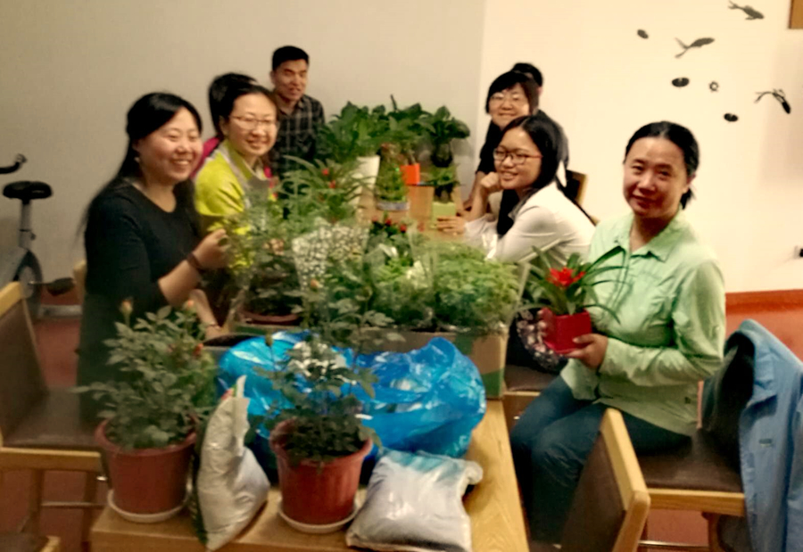 本次活动我们请到了生命科学学院竺笑老师为我们讲解办公室常见花卉栽培及养护知识,现场气氛十分活跃。竺老师首先就绿萝、一帆风顺、发财树、红掌、多肉等常见办公室绿植的生活习性及养护做了细致讲解。接着是老师们的提问时间,竺老师对每一个问题都做了分析和详细解决办法。每一位到场的老师除了学到了花卉养护知识,还能现场带走一盆小绿植,回去将理论运用到实际中。