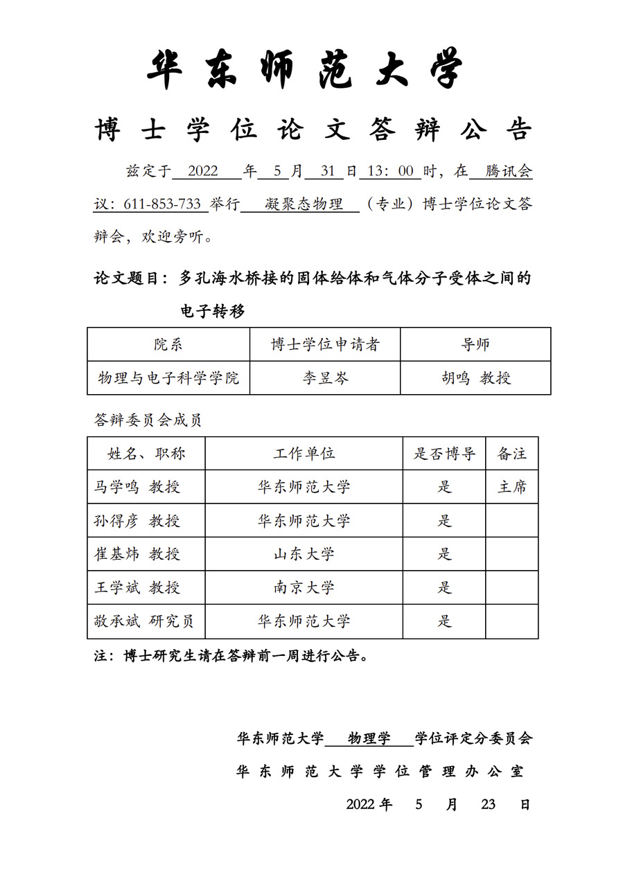 华东师范大学 博士学位论文答辩公告-李昱岑