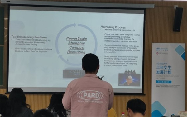 魏亚坤介绍了硬件工程师的主要职责及技能,硬件工程师岗位对学历、职业技能的要求。魏亚坤表示,在大学学习过程中,同学们应当提早培养职业技能和职业生涯规划能力,要积极参与各类学科竞赛,在实践中提升能力,在学好专业知识的同时,走出校园,接触社会,拥抱世界。
