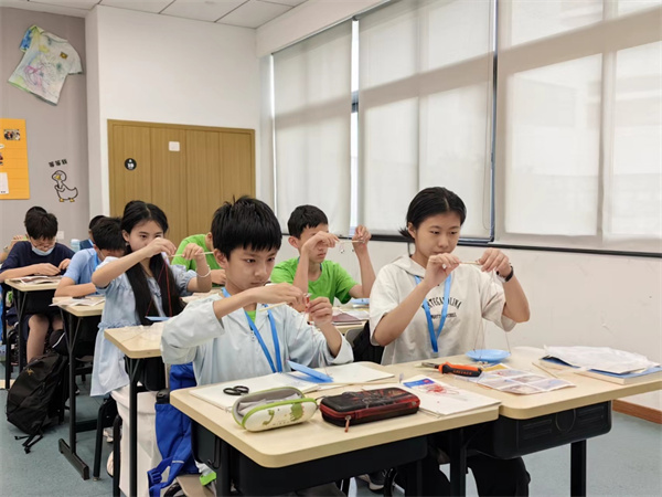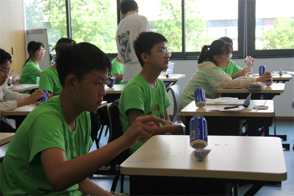 下午的实验探究课,小营员们分成4个班级分别开展了“光影猎手”“隐身魔术”“怪坡之谜”“磁悬浮小车”“无线充电”“自制杆秤”“走马灯”“希罗喷泉”动手探究实验。