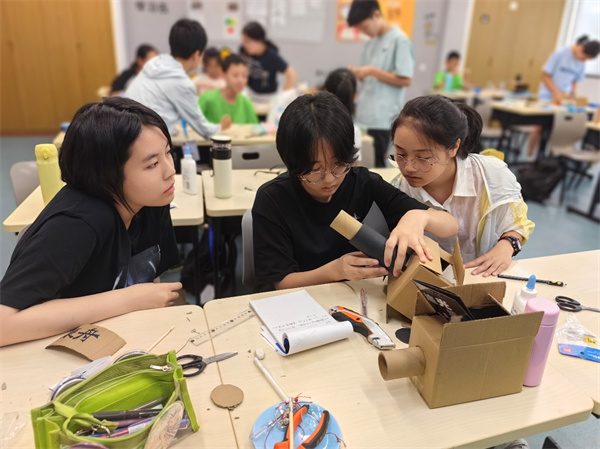 “光影猎手”实验讲解了凸透镜成像原理,小营员们动手制作了相机,深刻理解了凸透镜的光路偏折现象。