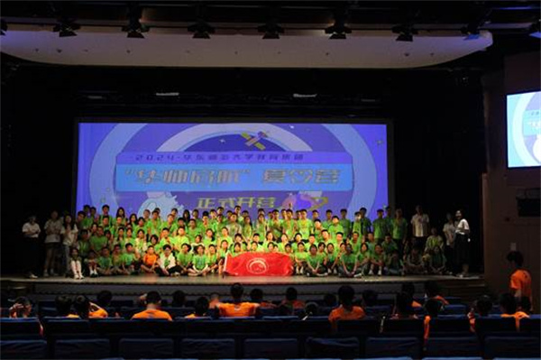 随后,褚院士宣布2024年华东师范大学教育集团“华师启航”夏令营正式开营,学院党委副书记栗蕊蕊、物理营代表董菁菁、“追光”科普夏令营队长陈佳妮上台进行了授旗仪式。
