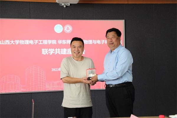 山西大学物理电子工程学院党委书记樊伟介绍到访人员,并对双方联学共建表示期待。