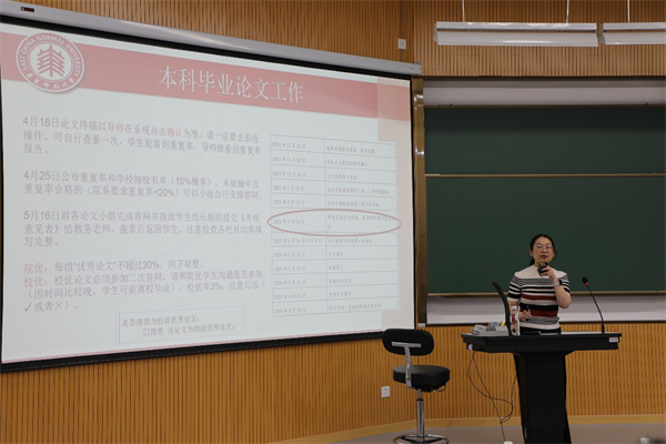 学院党政班子成员通报近期重点工作。副院长徐敏围绕本科毕业论文、大创项目结题与申报、秋期学期排课等,通报近期本科教学情况。