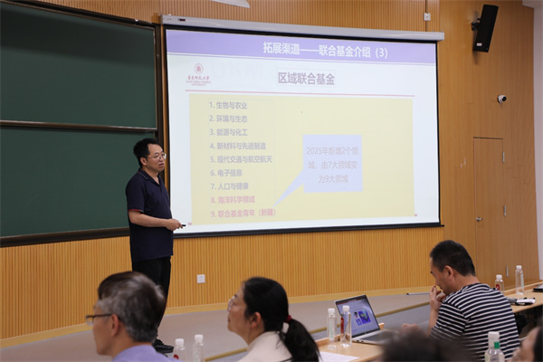 副院长武海斌通报了学院2025年度国家自然科学基金集中申报情况、海优专项及上海自然基金申报情况,并重点讲解了近期国家科技重大专项、国家重点研发计划、2025年度国际杰青计划、企业联合基金等项目申请信息,鼓励教职工积极申报科研项目,拓宽申报渠道。武海斌还分享了近期科研获奖情况,动员教职工积极报奖。