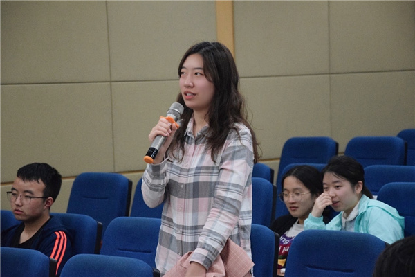 最后,汤军琳深入地介绍她在高中物理教学中的心得,播放了自己精心剪辑的北京海淀区教研员发表观点的视频。通过提问互动的方式,汤军琳向师范生们传达了一个优秀的物理教师应该“以扎实的专业知识为基”“能灵活运用信息化技术为教学助力”和“具有良好的应变能力、有创新突破的勇气毅力、有爱学生的赤子之心、有社会责任感和历史使命感”。