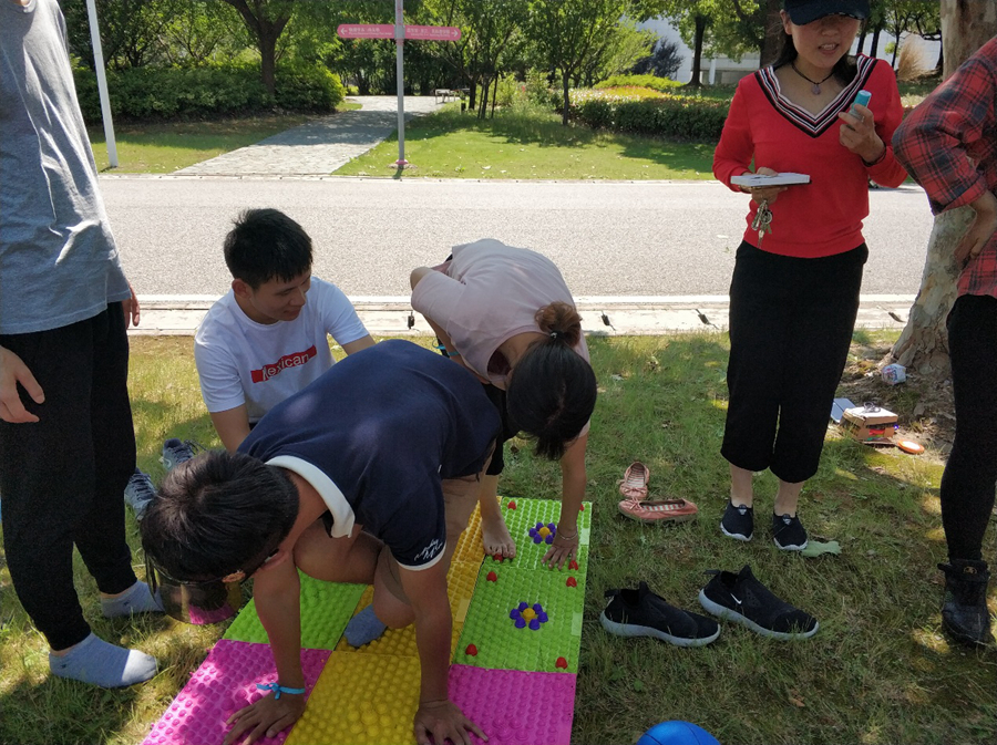 同学们在游戏中团队协作、斗智斗勇。在游戏“数数几只脚”中,为了在指压板上坚持足够长的时间,队员们想了很多办法;在游戏“蒙眼摸树”中,有一队同学因为特别兴奋而指挥错了方向,导致蒙眼队员偏离了原轨道;在游戏“车轮滚滚”中,有一队同学因为蒙头前进,与草坪上的一棵大树来了个亲密拥抱……游戏趣味横生,在大草坪上回荡着大家的欢声笑语,在华师大的大草坪上,我们度过了一个愉快的儿童节!