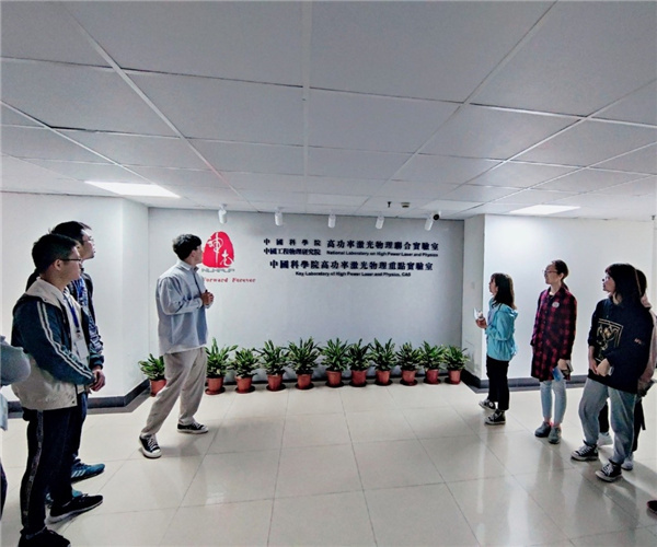 随后,同学们先后参观了“神光Ⅱ”综合高功率激光装置、中科院量子光学重点实验室等激光实验场所。量子光学实验室的刘震研究员详细介绍了实验室的研究方向和学科背景,同学们仔细聆听讲解,并与讲解人员进行交流。