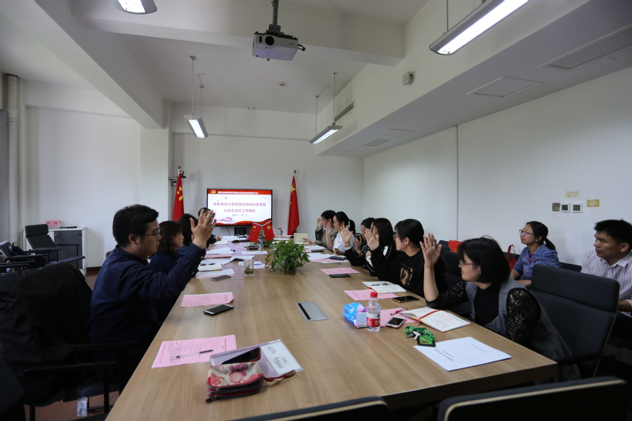 为了切实加强基层党组织建设,更好地发挥党组织的作用,根据《中国共产党章程》及《中国共产党支部工作条例(试行)》有关规定和上级党组织有关要求,2019年5月5日中午,物理与材料科学学院行政党支部在闵行物理楼223会议室召开全体党员大会,进行行政党支部委员会换届选举工作。大会由支部书记黄蕊同志主持,12位正式党员参加会议。