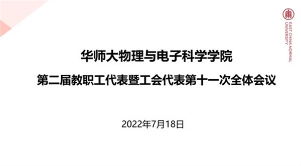 7月18日下午,胜游体育以线上线下相结合的方式,召开第二届教代会第十一次会议。会上,讨论并审议了《华东师范大学胜游体育2022年绩效实施方案(审议稿)》。会议由学院工会主席赵振杰主持,学院党政班子成员及教代会代表共50余人参加。