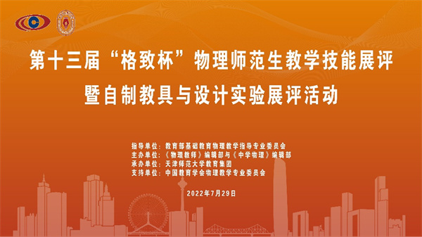 7月29日,基于师范专业认证的物理学科育人论坛暨全国第十三届“格致杯”物理师范生教学技能交流展示活动在线举行,本次活动由教育部基础教育物理教学指导专业委员会指导,《物理教师》和《中学物理》杂志编辑部联合主办,天津师范大学教育集团承办。