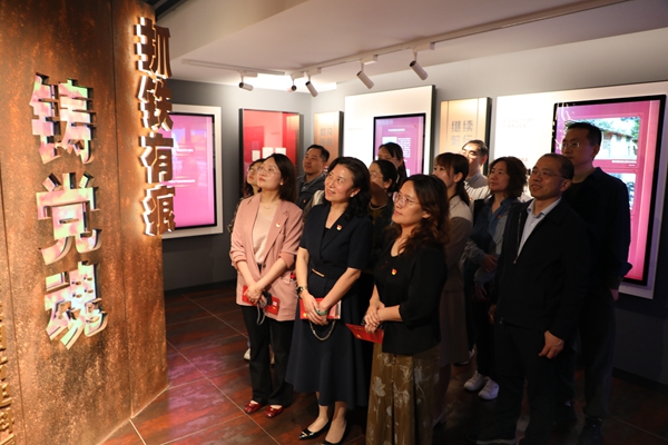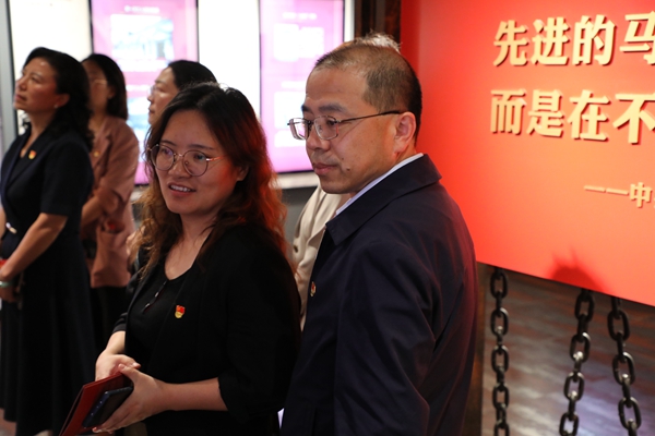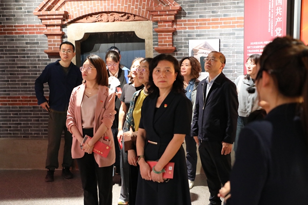 在纪念馆主展厅,全体人员沿着“时局与形势”“筹备与召开”“发展与高潮”三大展陈脉络,系统研习了中共四大召开的历史经纬,通过珍贵的历史文物、详实的文献资料和多媒体展示,全面了解了中共四大召开的时代背景、主要议程及历史贡献。