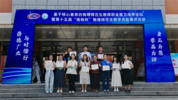 本次“格致杯”比赛由教育部基础教育物理教学指导专业委员会和中国教育学会物理教学专业指导委员会指导,《物理教师》编辑部与《中学物理》编辑部主办,通化师范学院承办。活动聚焦师范生教师职业能力核心素养培养,突出物理学科育人特色,开展物理创新教学设计与实验案例研讨,来自我校及北京师范大学、华中师范大学等108所高校的1500余名师生参加。